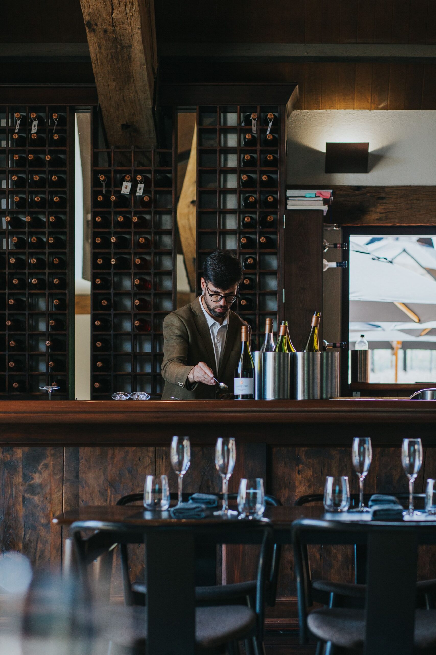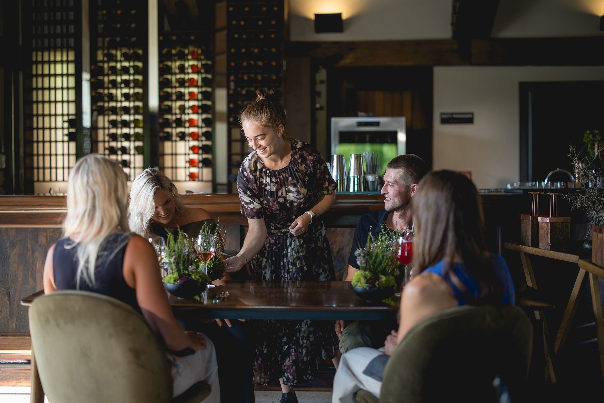 The Restaurant is nestled into the extraordinary southern landscape, located in a beautifully restored building of schist stone and wood. The interior boats rustic beams in the private dining rooms upstairs, and the main restaurant is centred around the warming fireplace. In summer the outdoor courtyard tables boast views of the wonderful vineyard vista.
